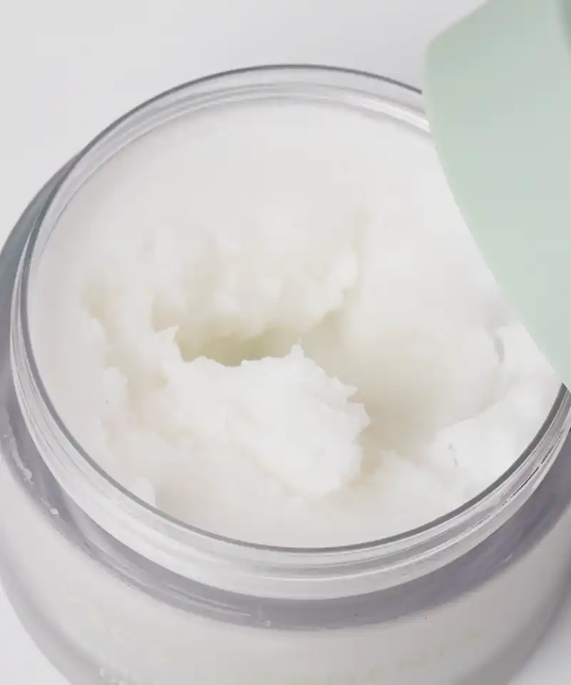 使用挖杓或乾手,取適量卸妝霜 (約5元硬幣大小),在掌心加溫軟化至接近液體